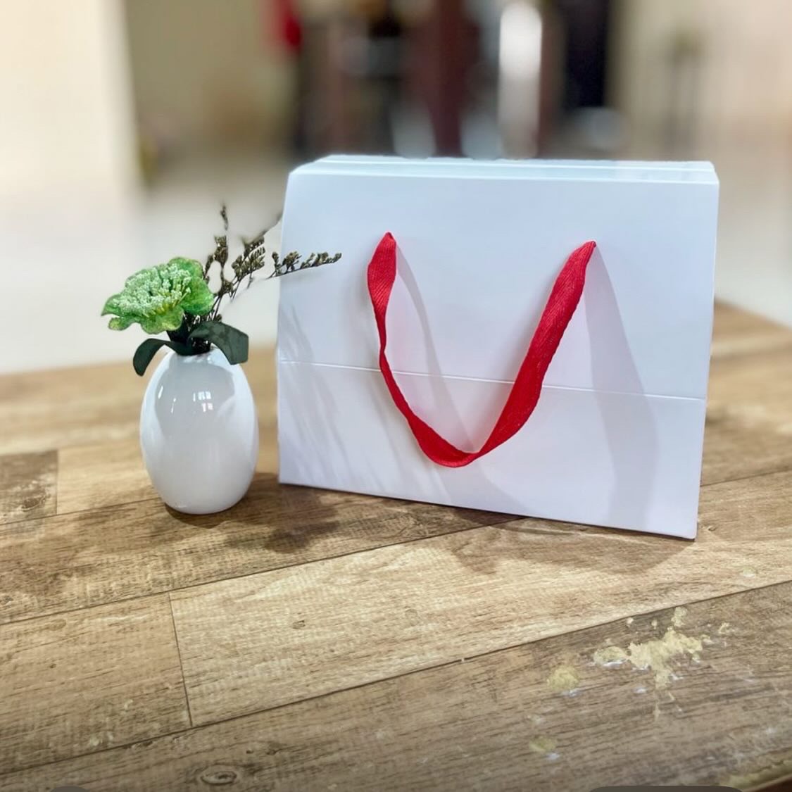 Food Pack / Gift Bag is ( 10 x 6.5 x 8” tall). No Lamination